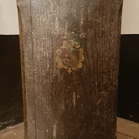 - Peaña cadrada de piñeiro pintada en negro. Na súa cara frontal, debuxado a pincel, un escudo heráldico partido cos apelidos Andrés e Cuenca.