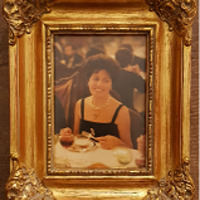 - Fotografía a cor de Mª Paz de la Peña. Marco en madeira dourada.