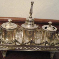 - Bandexa de escribanía en prata de forma rectangular e apoiada en catro pequenos pés de forma troncopiramidal co seu frente decorado cun ramallete de flores repuxado. Antepeito corrido perimetral, calado en losange, a modo de celosía, ritmado no remate por pináculos de bola (cinco nos lados maiores e tres nos menores) unidos por grilandas. Na base, os tres ocos para disposición do tinteiro, da salvadeira e do portaplumas. Marcada co inconfundíbel león rampante cordobés. Do prateiro cordobés Castejón (CAST), marcada polo contraste TORRE baixo a cifra 36, relativa ao ano e para mellor certeza cronolóxica.