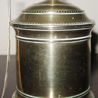 - Salvadeira en bronce de corpo cilíndrico, co pé e moldura superior lixeiramente exvasados perfilados con arista, con tapa en forma de media laranxa apuntada coroada cunha landra.