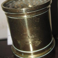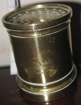 - Salvadeira en bronce sobredourado de corpo cilíndrico con tapa e pé moldurados e lixeiramente exvasados.