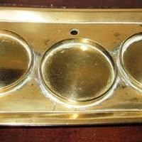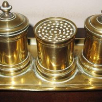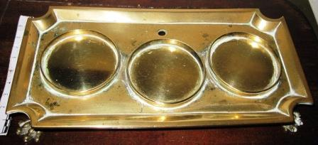 - Bandexa para escribanía de planta rectangular coas esquinas cortadas en chafrán. No plano, conta cos tres ocos para acomod do tinteiro, salvadeira e portaplumas. Vai apoiada en catro pés en forma de garra, e un pequeno orificio na parte traseira para colocar a pluma.