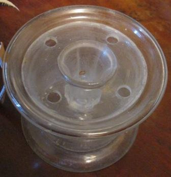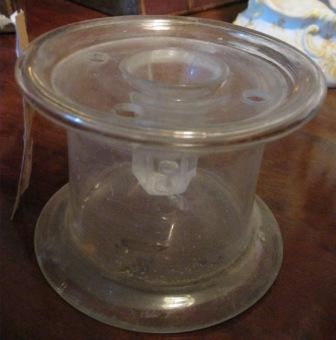 - Portaplumas en cristal de forma cilíndrica e catro orificios na parte superior para colocas as plumas.