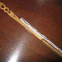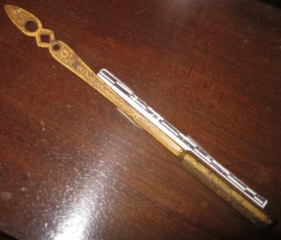 - Pluma en metal con filigranas en dourado. Incompleta, fáltalle o plumín.