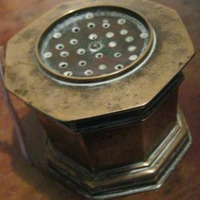- Salvadeira en bronce sobredourado de corpo octogonal, co pé moldurado en escocia e exvasado e cornisa da boca voada.
