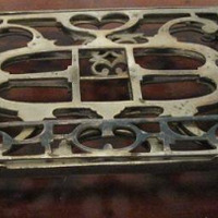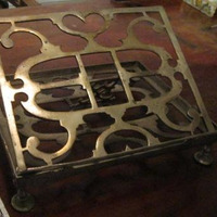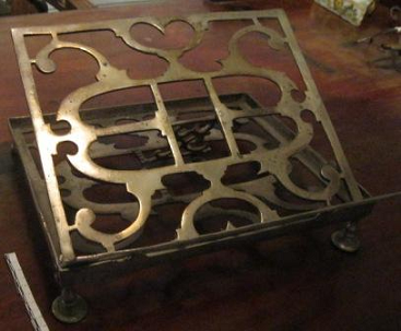 - Atril en alpaca calada con portalibros abatible, sobre catro pequenos pés.