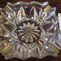 - Cinceiro en cristal tallado de forma cadrada con catro apoios para cigarros, estes en prata.