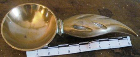 - Cinceiro en bronce feito de bombas de artillería fundidas con mango tipo palmatoria en forma de folla.