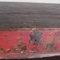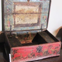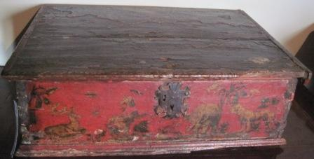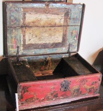 - Caixa para gardar xogos en madeira policromada decorada con calcomanías. No seu interior con dous caixóns laterais. Conserva o escudete orixinal.
