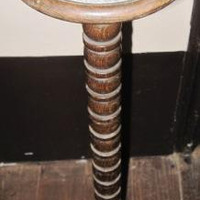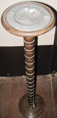 - Cinceiro de estaño da casa de Brandy de Xerez "Valdespino" sobre un pé de madeira torneada.