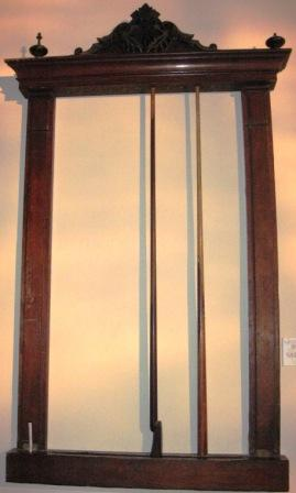 - Taqueira para o xogo de billar. En madeira de piñeiro con cuberta de lámina de castiñeiro, como embelecedor. Ramatado nun copete vexetal flanqueado por pináculos, pintado este remate en negro, imitando un acabado en caoba. Conserva dous dos tacos orixinais. De posíbel fabricación catalana de comezos do século XX, segue o tipo dos que fabricaba Francisco Amorós, proveedor da Real Casa, moi semellante aos ofrecidos pola casa Mayor i Poch no seu taller barcelonés de ebanistería, abertos á persoalización do cliente na decoración do copete, precisamente.