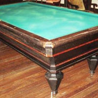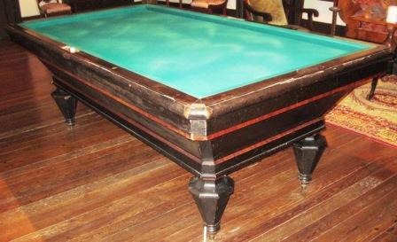 - Mesa de billar francés, de carambola, da casa Henri Prestable, fundada en 1864. Vai apoiada en catro pés troncocónicos invertidos e facetados. O taboleiro é de lousa, nunha soa peza, tapizado en pano verde. O orixinal era vermello. Leva nas bandas cadansúa decoración de losange en marfil, os marcadores en realidade. Perdeu os posíbeis cinceiros, quizais de aluminio ou peltre, nos laterais.