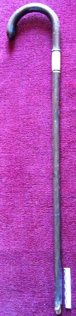 - Bastón tallado en madeira coa súa virola, ampla, labrada en óso con dous filetes no imóscapo e sumóscapo en ébano.
