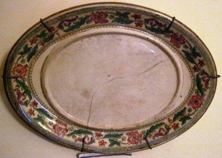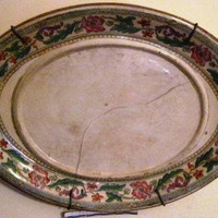 - Fonte de louza inglesa de forma ovalada, de cor branco. Na ala, cenefa con motivos florais en tons verdes e rosas.