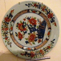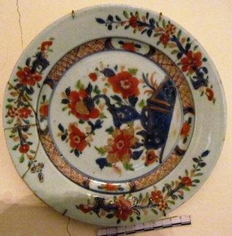 - Prato sopeiro en louza da Compañía de Indias, branco, vai decorado con motivos florais en tons azuis, verdes e vermellos, semellante no estilo e calidades aos producidos por John Ridgway Company a partir de 1813..